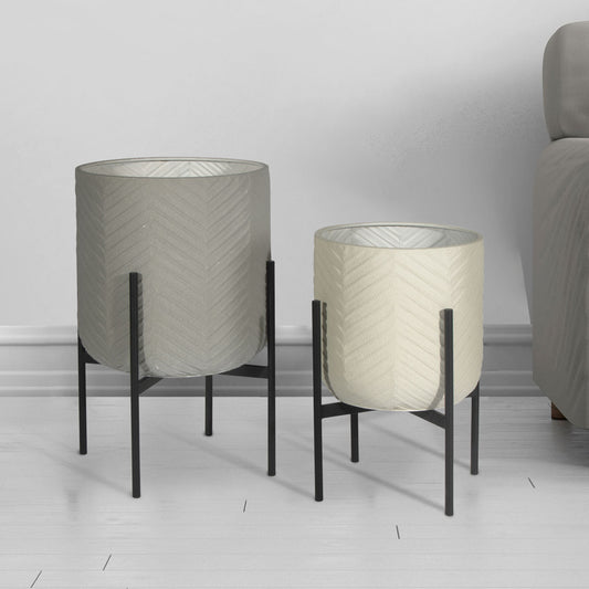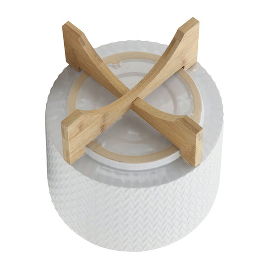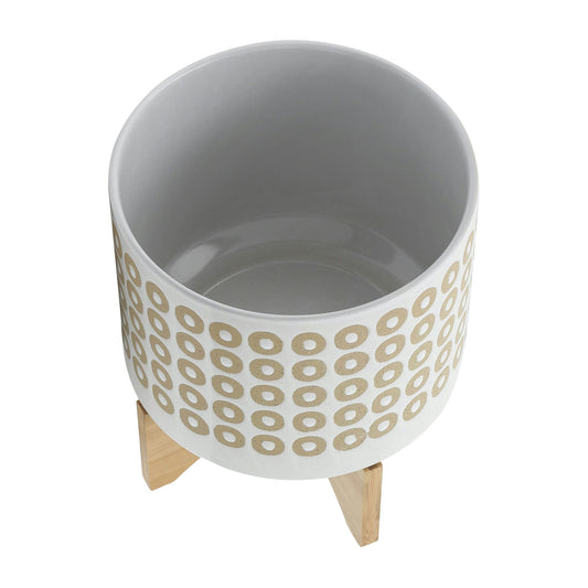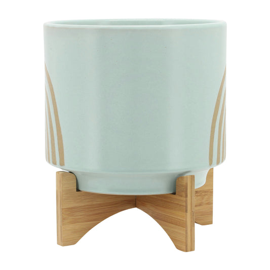 10" Dotted Planter W/ Wood Stand, Light Blue