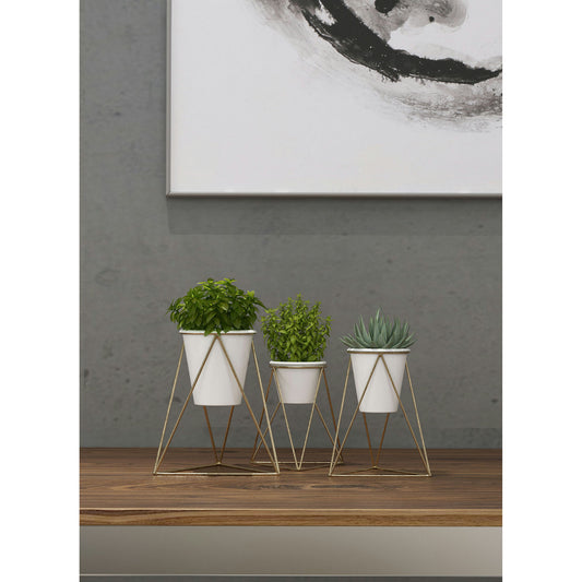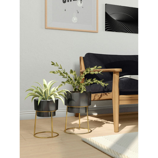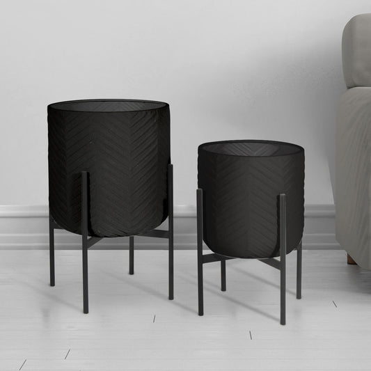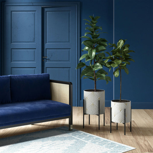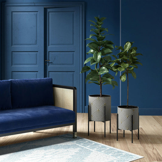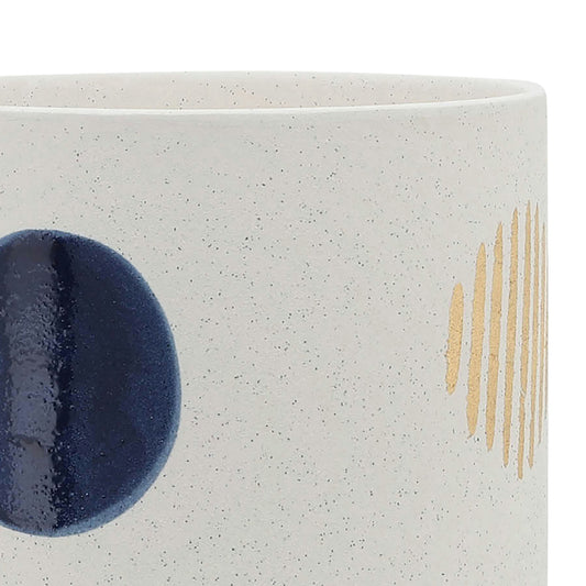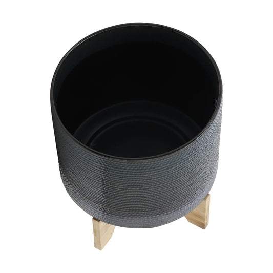 10" Dotted Planter W/ Wood Stand, Dark Blue