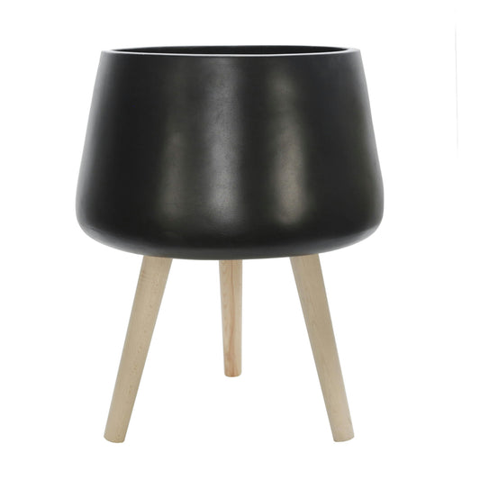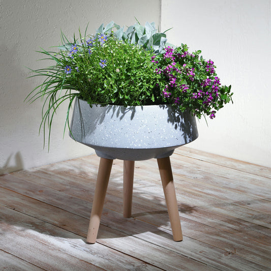 18" Terrazzo Planter W/ Wood Legs, Gray