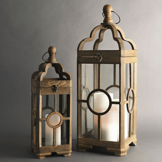 Lantern (Set Of 2) 7.5"L x 14.75"H, 10.25"L x 21.5"H Wood/Glass