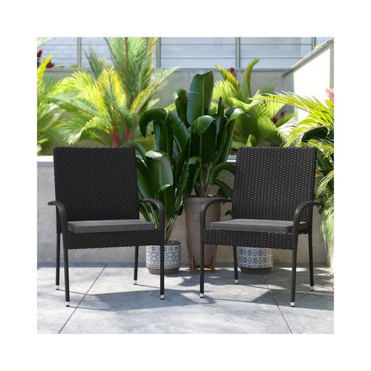 Flash Furniture Maxim 2PK Black Patio Chair 2-TW-3WBE073-CU01GY-BK-GG