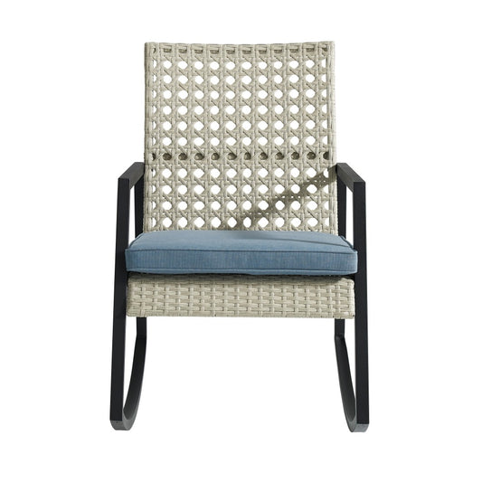 Liza Modern Patio Cane Weave Rattan Rocking Chair - Light Gray/Blue