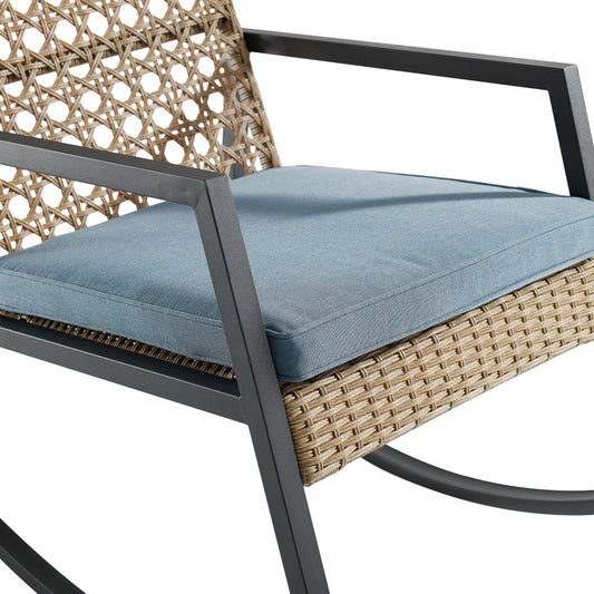 Liza Modern Patio Cane Weave Rattan Rocking Chair - Light Brown/Blue