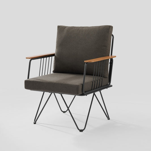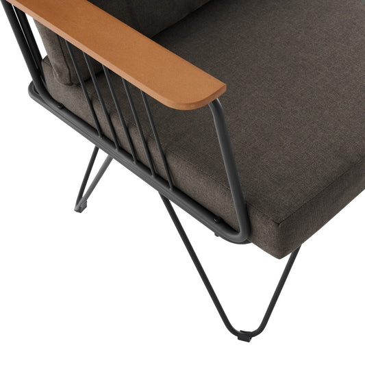 Modern Metal and Wood Detail Hairpin Leg Patio Chair - Clove Brown