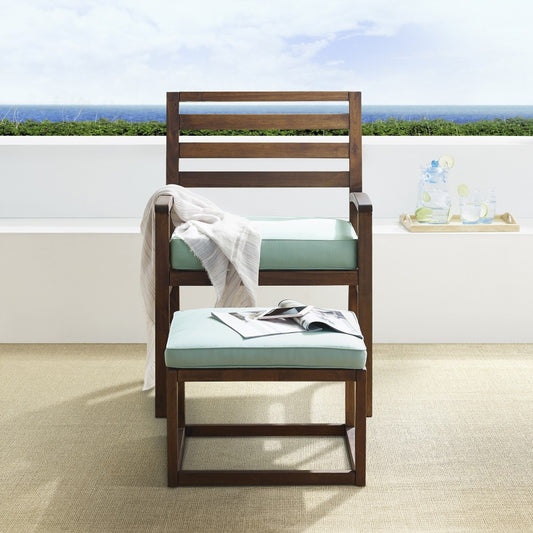 Payson Acacia Wood Outdoor Patio Chair and Pull Out Ottoman - Dark Brown/Blue