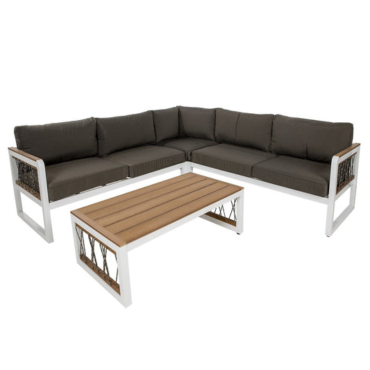 Teak Wood and Metal Outdoor Patio Sectional with Cord Accents -White, teak wood
