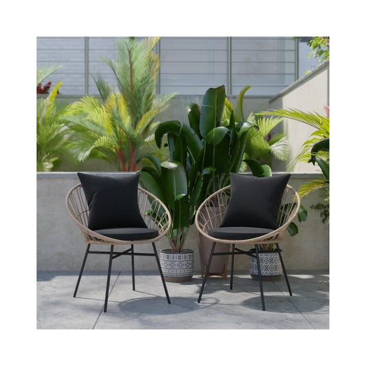 Flash Furniture Devon 2PK Tan Rope Chair-BLK Cushion TW-VN017-TAN-BK-GG