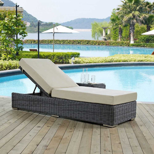 Summon Outdoor Patio Sunbrella Chaise Lounge, Canvas Antique Beige