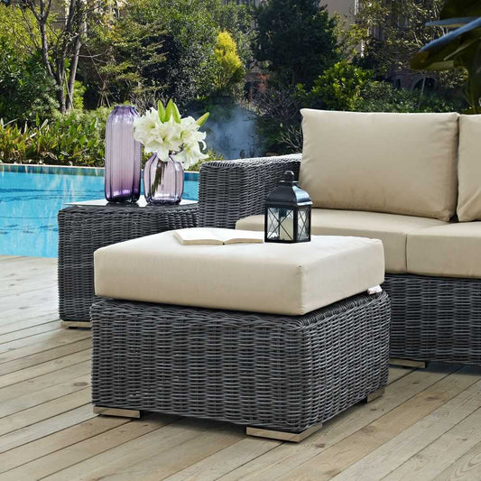 Summon Outdoor Patio Sunbrella Ottoman, Canvas Antique Beige