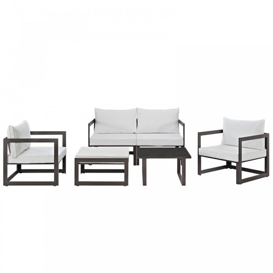Fortuna 6 Piece Outdoor Patio Sectional Sofa Set, Brown White, EEI-1731-BRN-WHI-SET