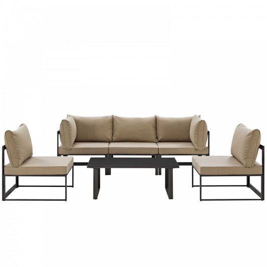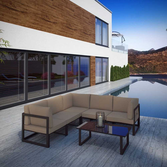 Fortuna 6 Piece Outdoor Patio Sectional Sofa Set, Brown Mocha, EEI-1723-BRN-MOC-SET