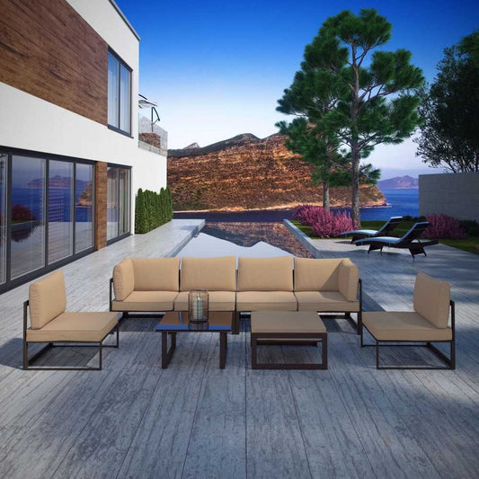 Fortuna 8 Piece Outdoor Patio Sectional Sofa Set, Brown Mocha, EEI-1728-BRN-MOC-SET