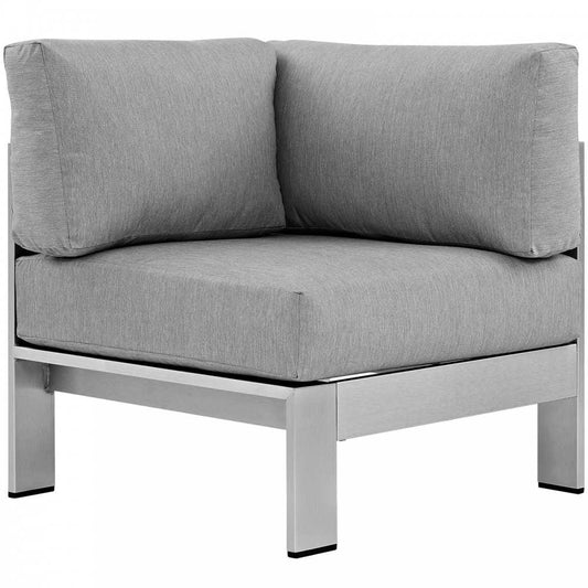 Shore Outdoor Patio Aluminum Corner Sofa, Silver Gray