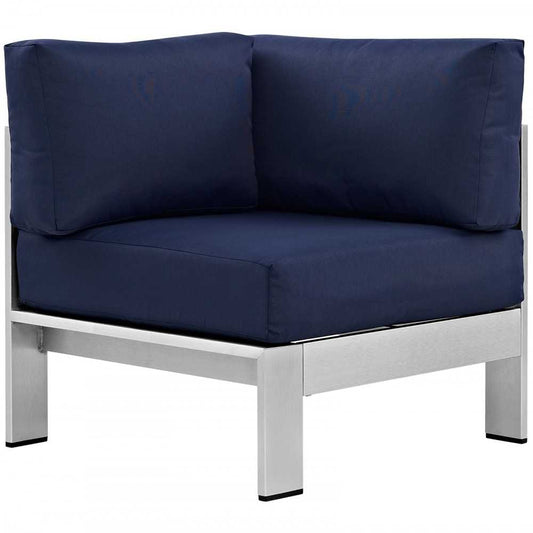 Shore Outdoor Patio Aluminum Corner Sofa, Silver Navy