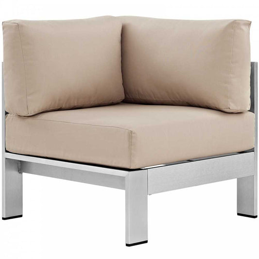 Shore Outdoor Patio Aluminum Corner Sofa, Silver Beige