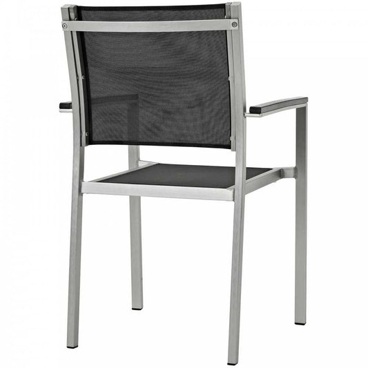 Shore Dining Chair Outdoor Patio Aluminum Set of 2, Silver Black