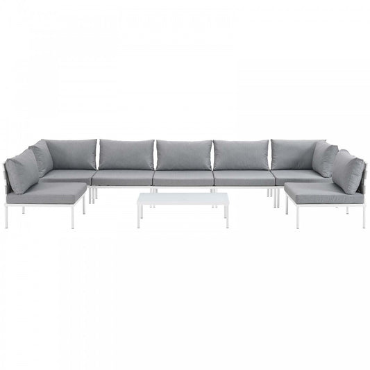 Harmony 8 Piece Outdoor Patio Aluminum Sectional Sofa Set, White Gray, EEI-2625-WHI-GRY-SET