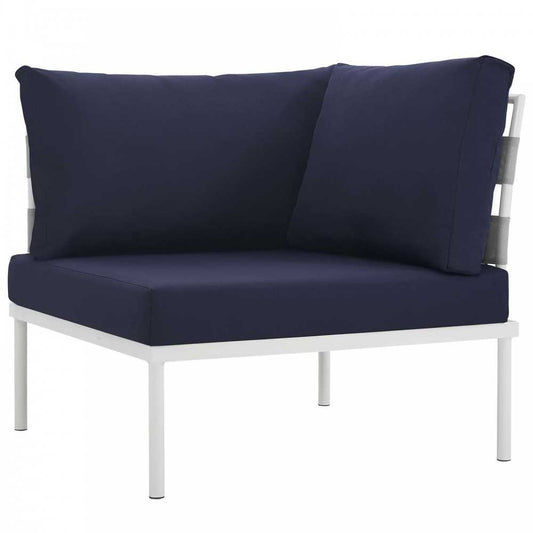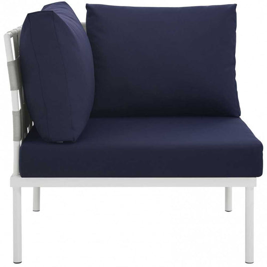 Harmony Outdoor Patio Aluminum Corner Sofa, White Navy