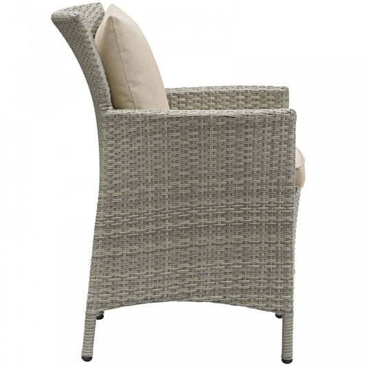 Conduit Outdoor Patio Wicker Rattan Dining Armchair, Light Gray Beige