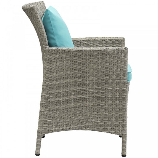 Conduit Outdoor Patio Wicker Rattan Dining Armchair, Light Gray Turquoise