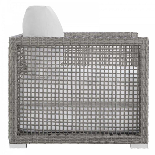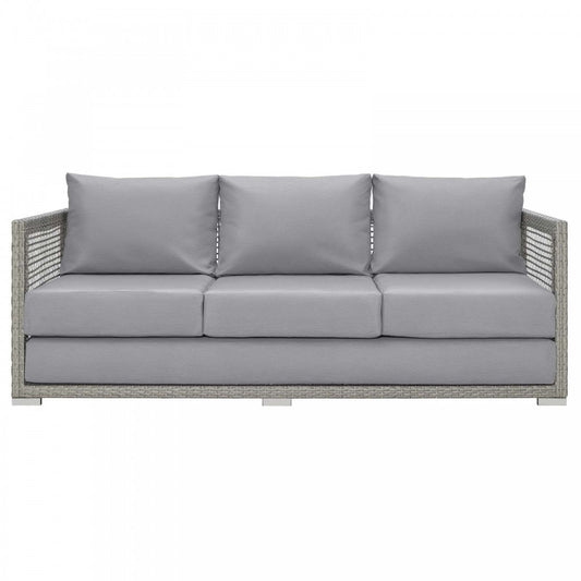 Aura Outdoor Patio Wicker Rattan Sofa, Gold, EEI-2923-GRY-WHI