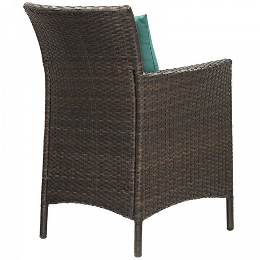 Conduit Outdoor Patio Wicker Rattan Dining Armchair Set of 4, Brown Turquoise