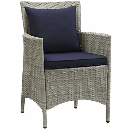 Conduit Outdoor Patio Wicker Rattan Dining Armchair Set of 4, Light Gray Navy