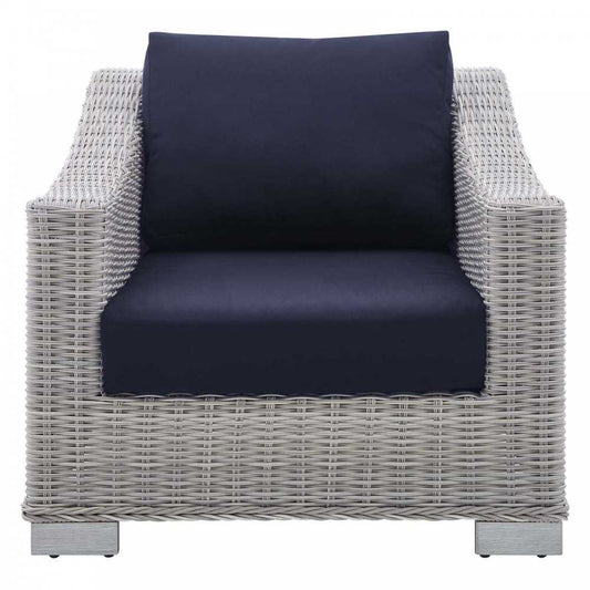 Conway Sunbrella Outdoor Patio Wicker Rattan Armchair, Light Gray Navy