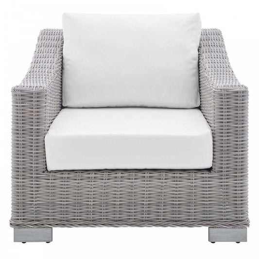 Conway Sunbrella Outdoor Patio Wicker Rattan Armchair, Light Gray White