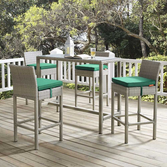 Conduit Bar Stool Outdoor Patio Wicker Rattan Set of 4, Light Gray Turquoise