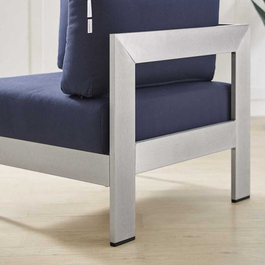 Shore Sunbrella Fabric Aluminum Outdoor Patio Armless Chair, Silver Navy