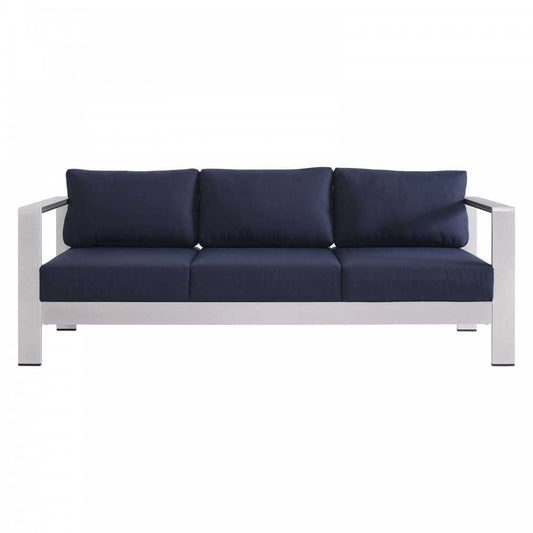 Shore Sunbrella Fabric Aluminum Outdoor Patio Sofa, Silver Navy