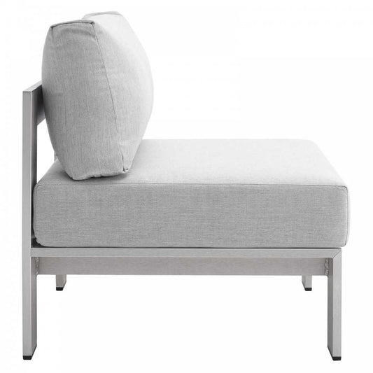 Shore Sunbrella Fabric Aluminum Outdoor Patio Armless Chair, Silver Gray