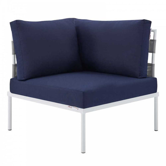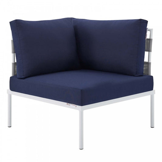 Harmony 8-Piece Sunbrella Outdoor Patio Aluminum Sectional Sofa Set, White Navy, EEI-4940-WHI-NAV-SET