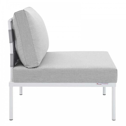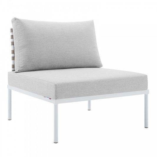Harmony Sunbrella Basket Weave Outdoor Patio Aluminum Armless Chair, Tan Gray