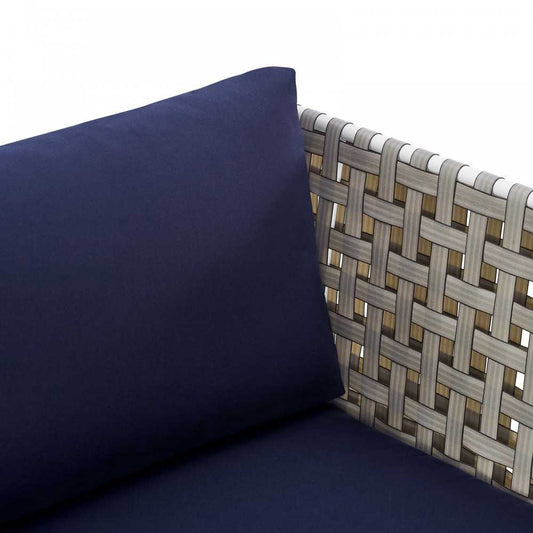 Harmony Sunbrella Basket Weave Outdoor Patio Aluminum Armchair, Tan Navy