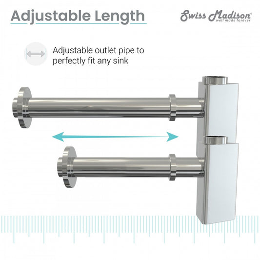 Swiss Madison Square Bottle Trap Drain, Chrome
