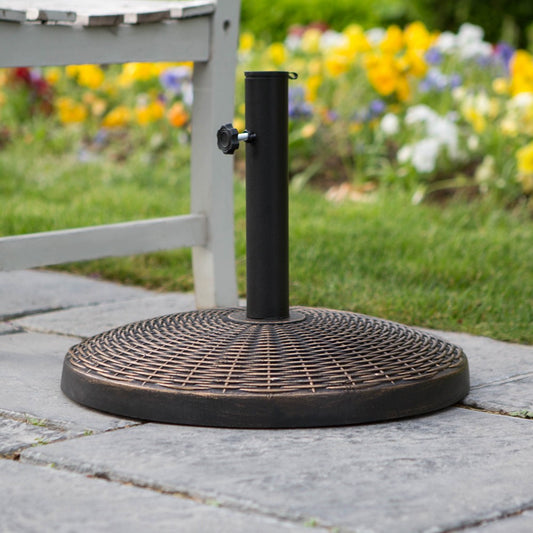 Weave Round Outdoor Patio Umbrella Base - Antique Bronze