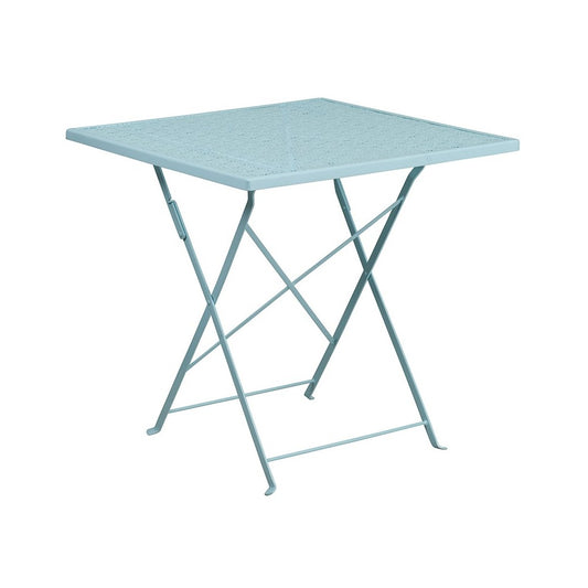 Commercial Grade 28" Square Sky Blue Indoor-Outdoor Steel Folding Patio Table Set with 2 Square Back Chairs