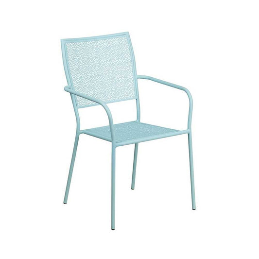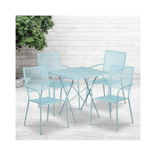 Commercial Grade 28" Square Sky Blue Indoor-Outdoor Steel Folding Patio Table Set with 4 Square Back Chairs
