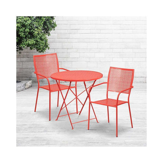 Commercial Grade 30" Round Coral Indoor-Outdoor Steel Folding Patio Table Set with 2 Square Back Chairs