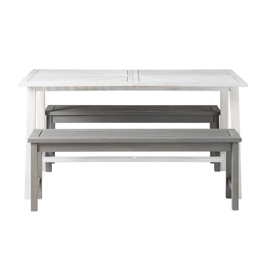 Vincent Solid Acacia Wood 3 Piece Chevron Dining Set - White Wash
