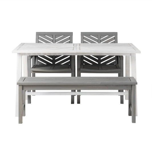 Vincent Solid Acacia Wood 4 Piece Chevron Dining Set - White Wash