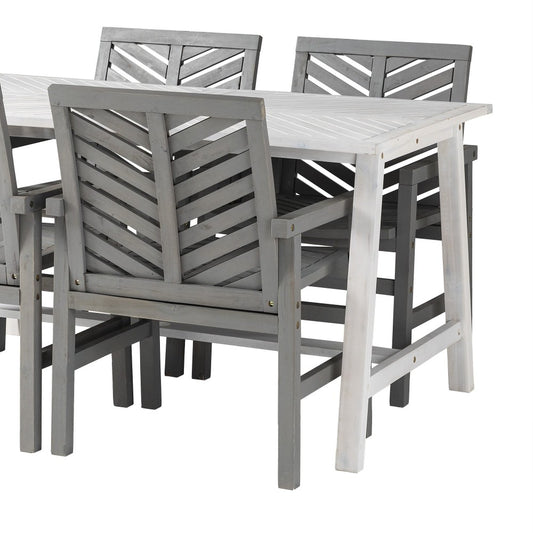 Vincent Solid Acacia Wood 5 Piece Chevron Dining Set - White Wash