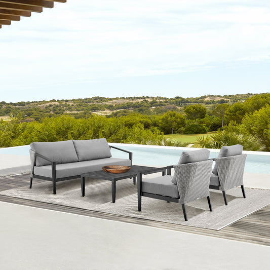 Aileen Patio 4-Piece Lounge Set in Aluminum and Wicker with Grey Cushions