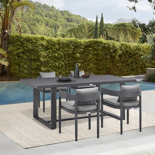 Argiope Outdoor Patio 5-Piece Dining Table Set in Aluminum with Grey Cushions