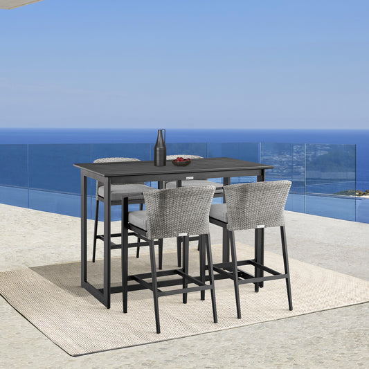 Argiope Outdoor Patio 5-Piece Bar Table Set in Aluminum with Grey Cushions