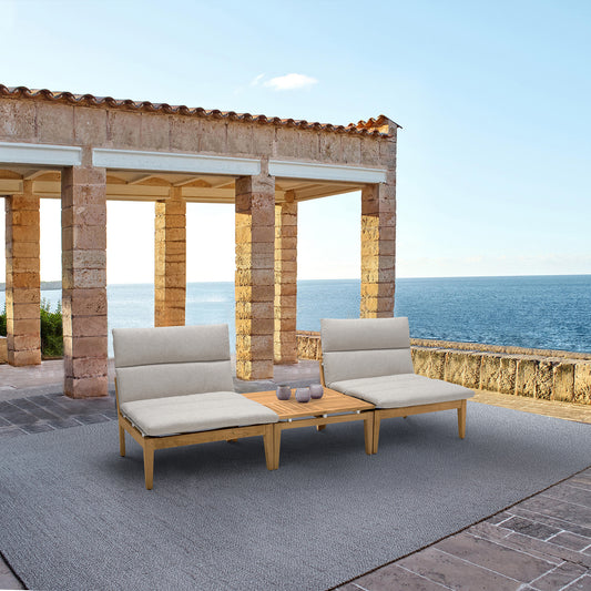 Arno Outdoor 3 Piece Teak Wood Seating Set in Beige Olefin