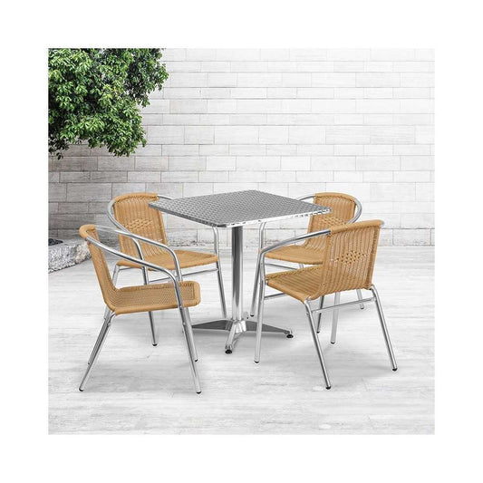 27.5'' Square Aluminum Indoor-Outdoor Table Set with 4 Beige Rattan Chairs