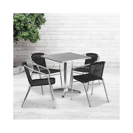 27.5'' Square Aluminum Indoor-Outdoor Table Set with 4 Black Rattan Chairs